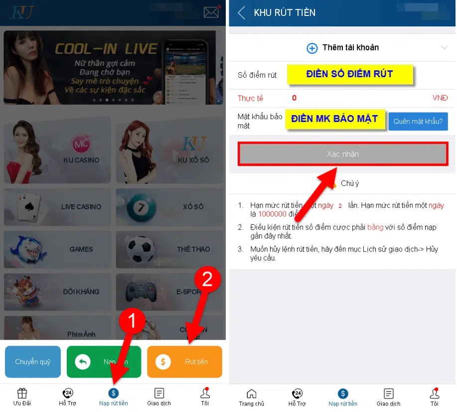 Hướng dẫn rút tiền kubet cn3789 từng bước